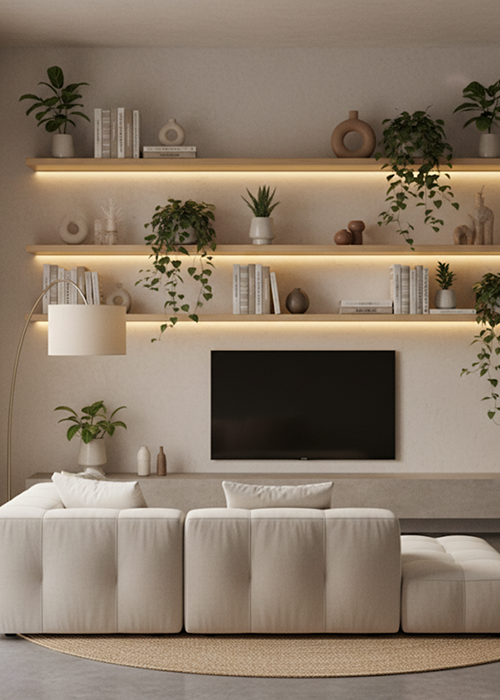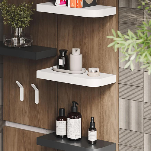 Our custom floating shelf systems, you can easily customize shelves to fit your own style and space by selecting the wood type, size and finish color.